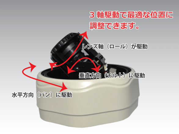 ■3軸稼動バリフォーカルレンズで最適な撮影ポジション