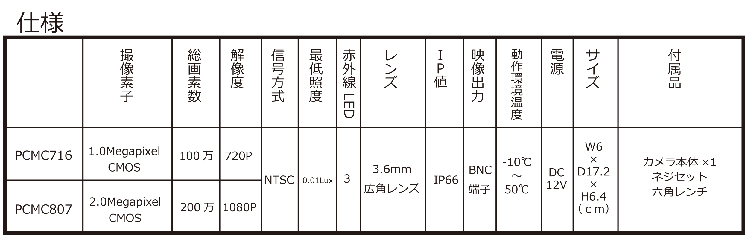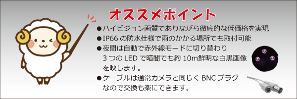 AHD100万画素3.6ミリ広角レンズカメラ 価格9,000円(税別)
