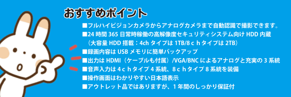 カメラ4台まで対応ハイブリッドレコーダー(1TBのHDD搭載)