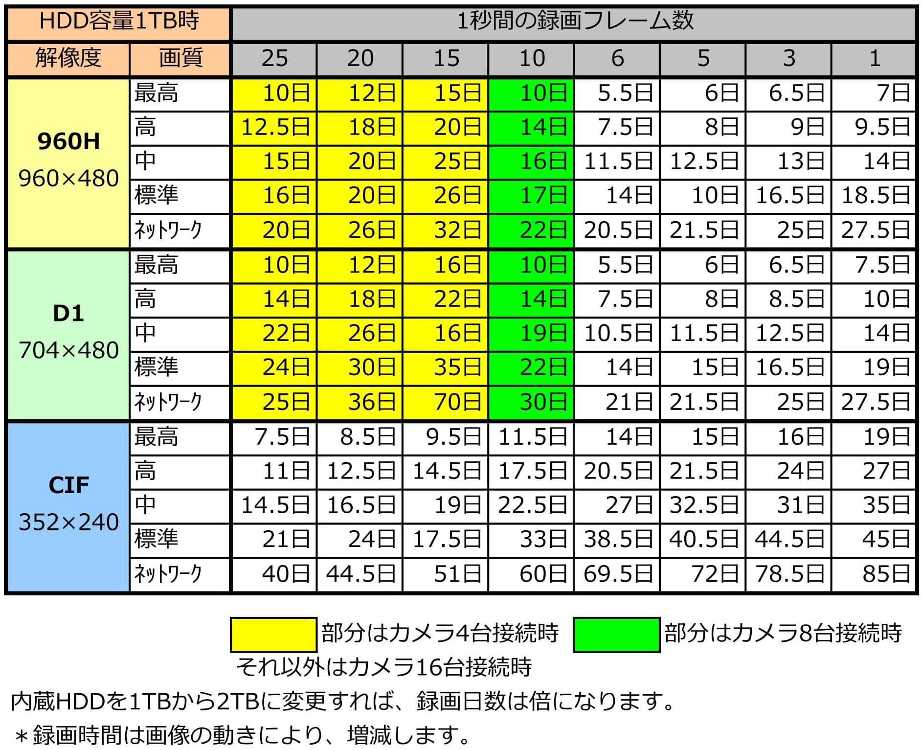 従来機種では解像度など、録画可能時間に影響する値は全カメラ共通でしか選択できませんでした。本機ではカメラごとに設定できるので撮影場所に適した設定で長時間録画の撮影が可能です。
